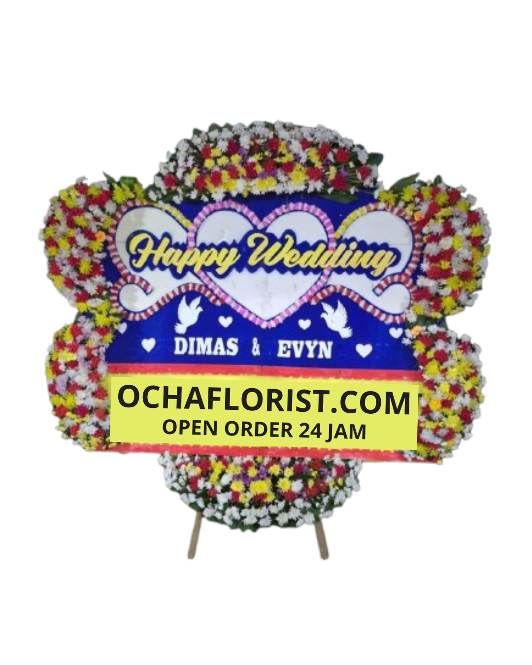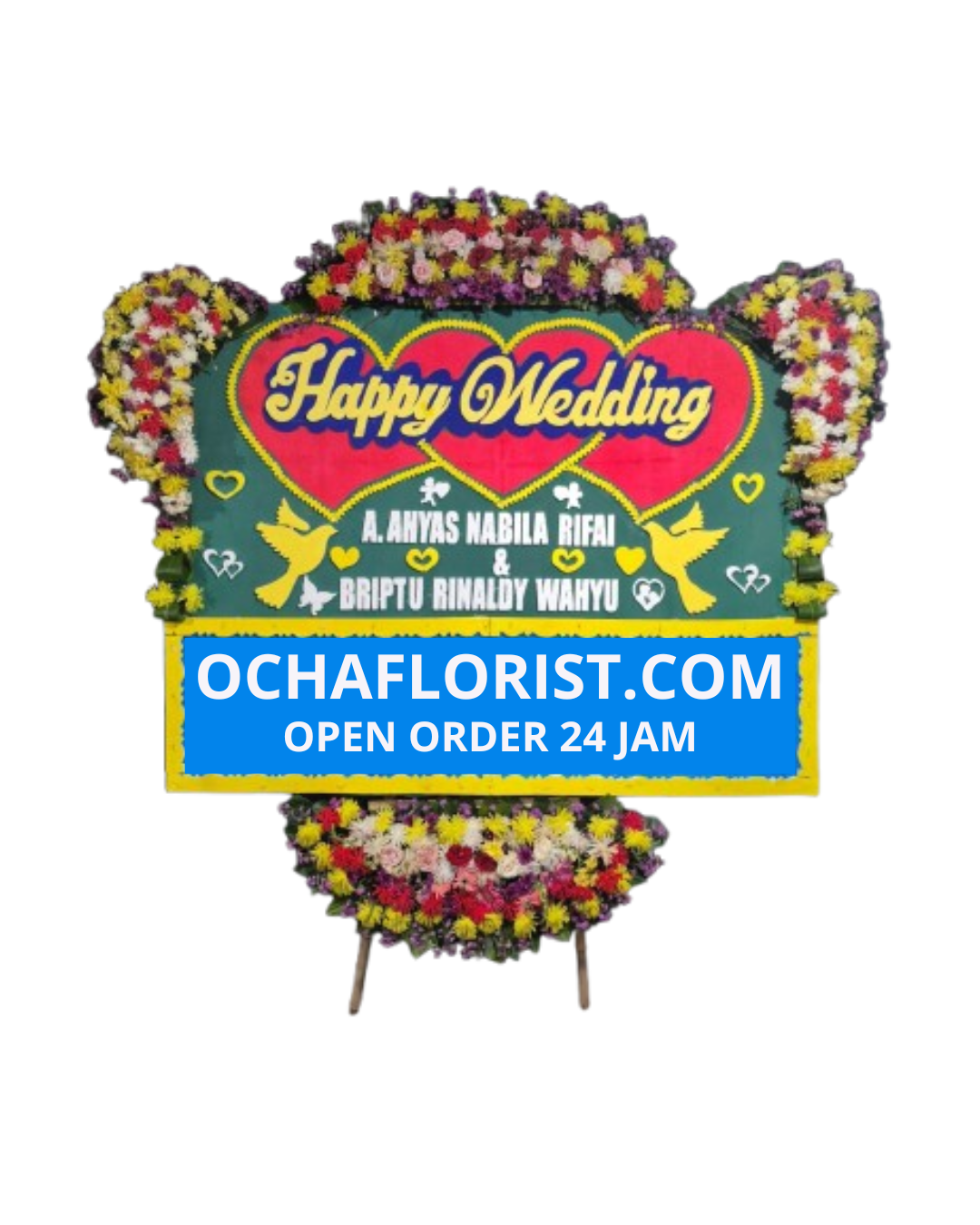 Pemesanan dan pengiriman Bunga Papan "Happy Weddyng" dari pelanggan setia kami di daerah Surabaya